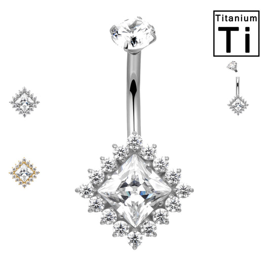 PWD-043 Piercing Banana Ombelico in Titanio con Cristalli e con Pietra Naturale Quadrata