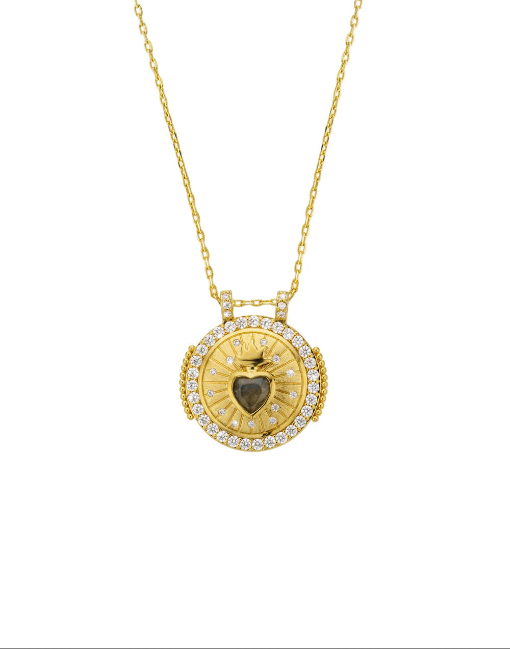 Il suo cuore di labradorite cattura la luce e lo sguardo, aggiungendo il giusto tocco di chic bohémien. È il tipo di collana che scegli per migliorare il tuo stile e affermare il tuo umore: un po' mistica, sempre radiosa.