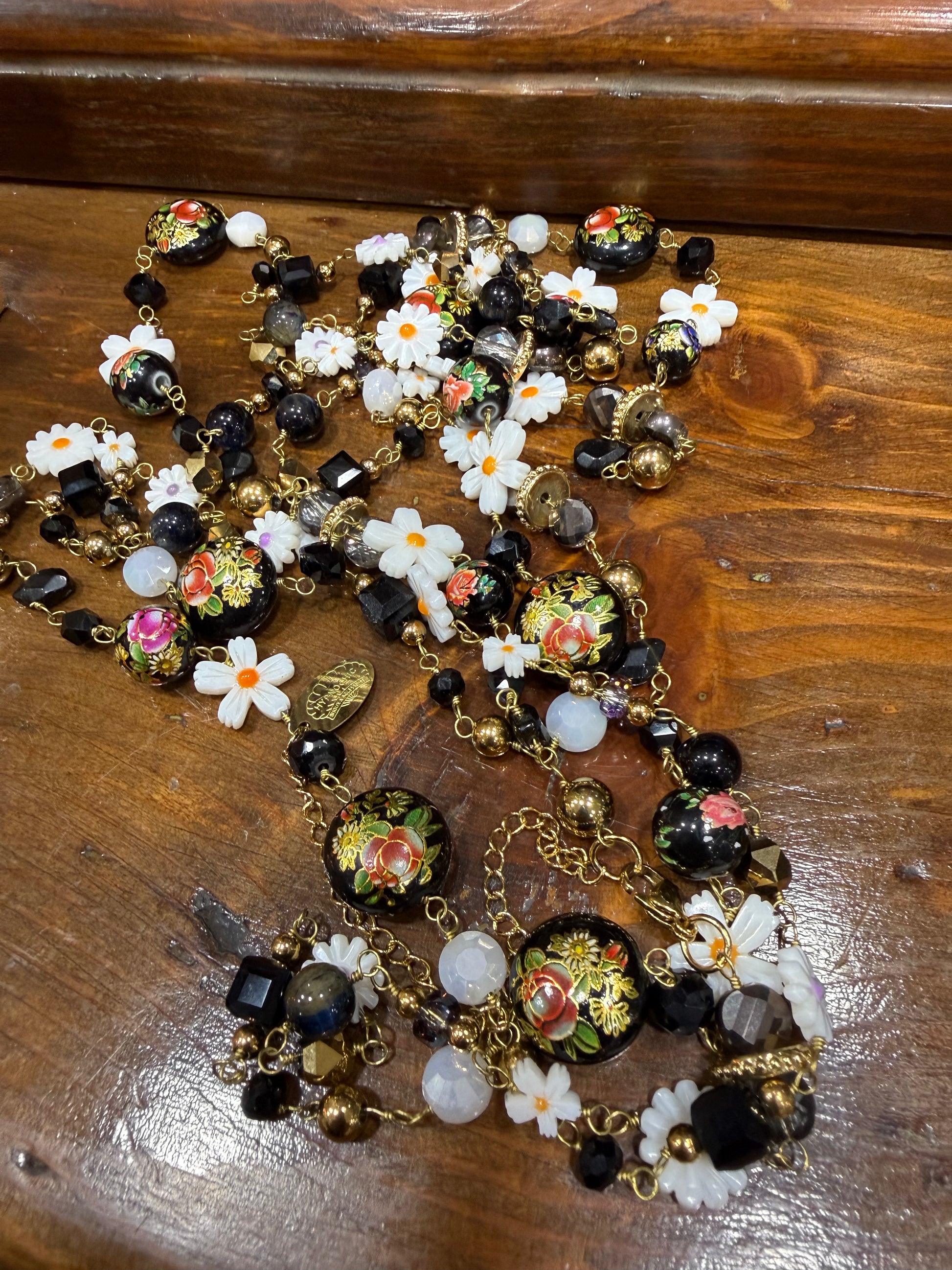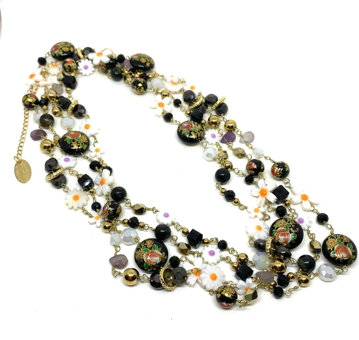 Sauté con perle di fiori multicolori, perle giapponesi e perle di vetro sfaccettate.