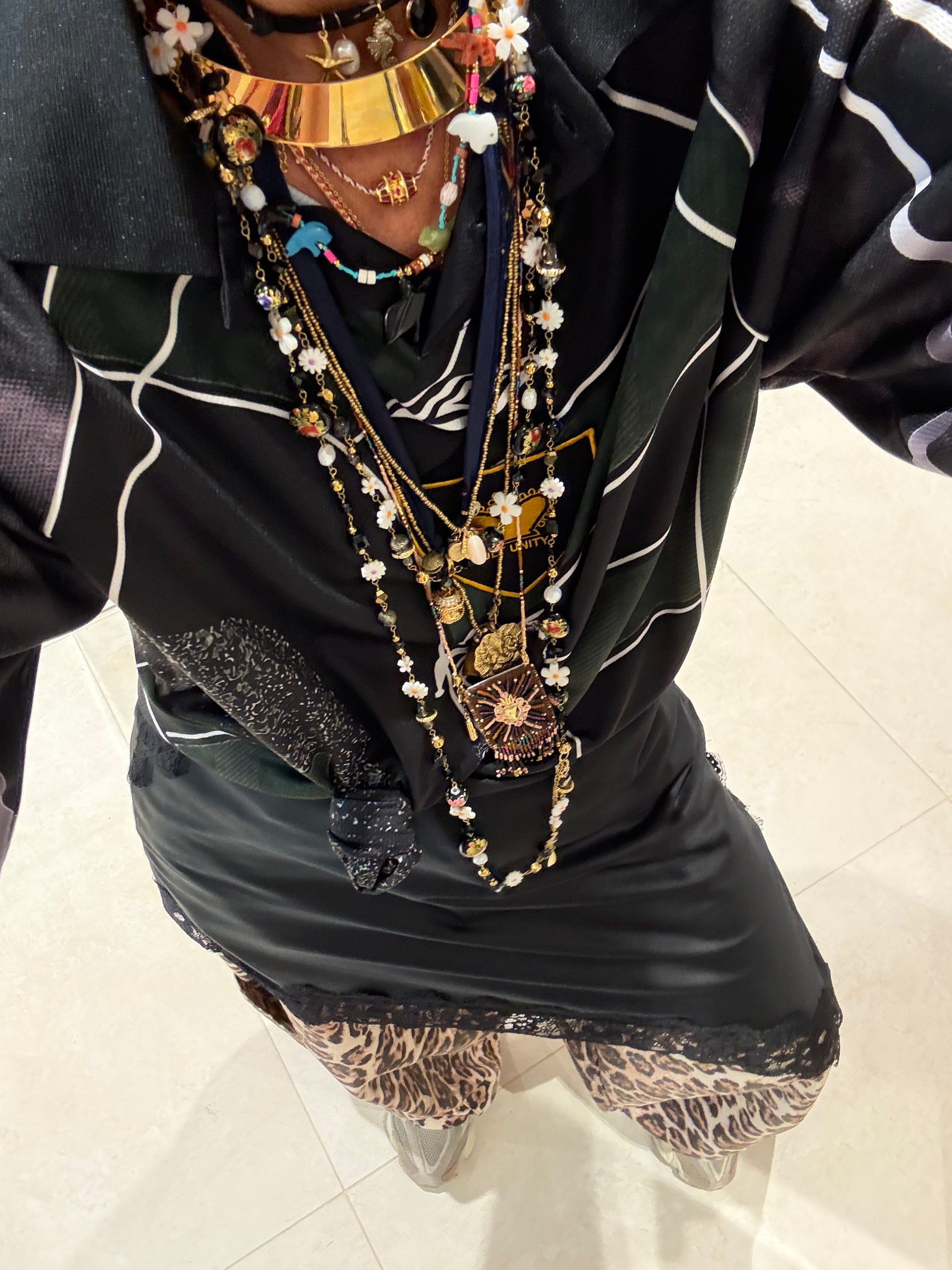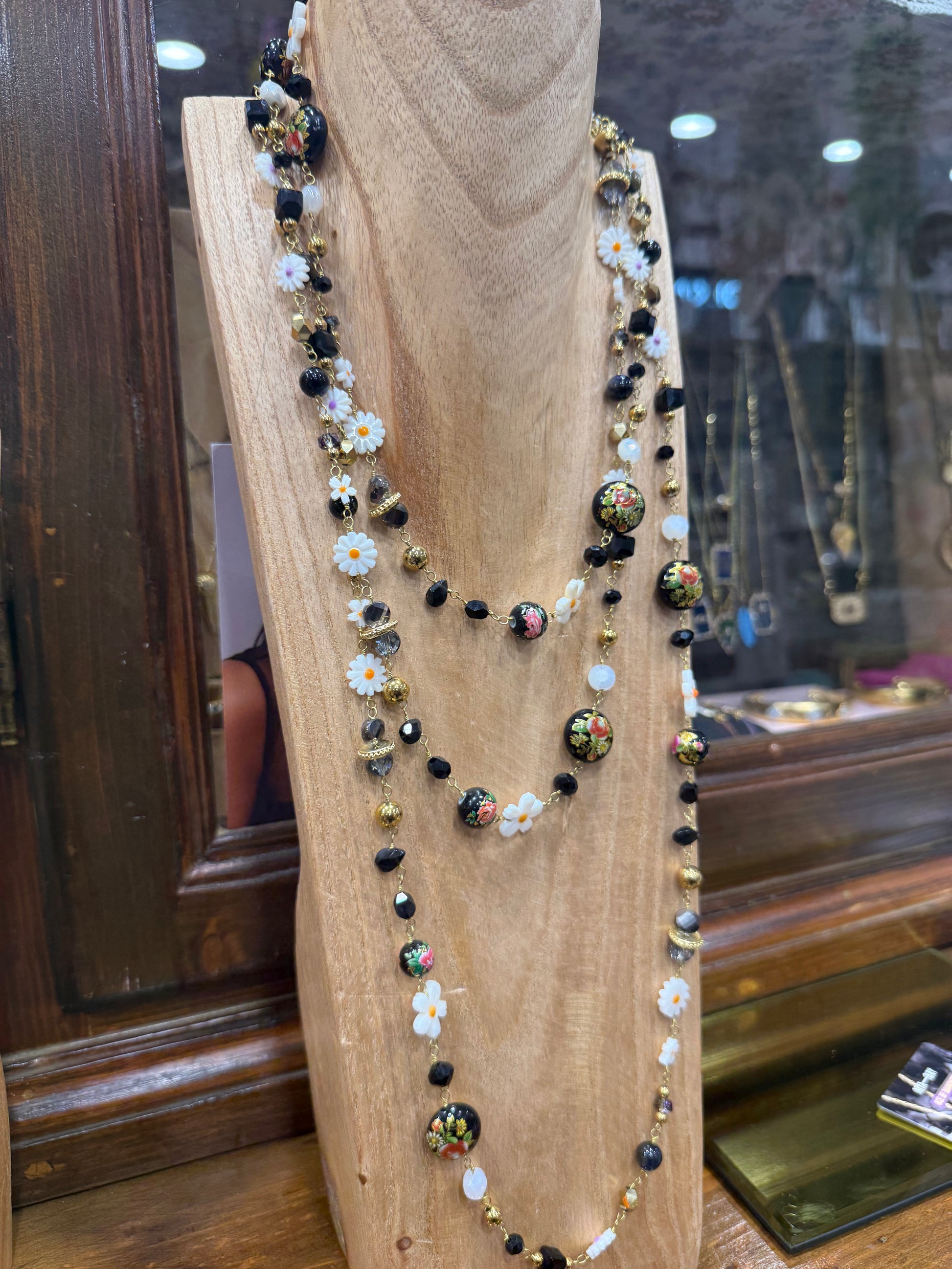 Invitando alla gioia e alla celebrazione dei colori, questo sautoir è creato per completare gli outfit più diversi, dagli abiti estivi leggeri ai morbidi maglioni, offrendo un'elegante transizione tra le stagioni.