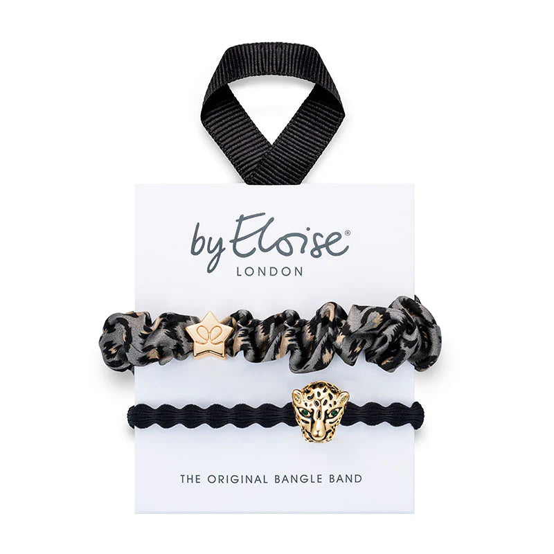Una combinazione sorprendente di Gold Star Silk Scrunchie Grey Leopard e Jaguar Black